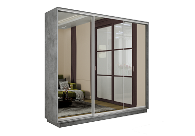 Шкаф-купе Премиум 3х дв 180х240х60 Бетон Зеркало/Зеркало/Зеркало 180x240 Бетон, С полками
