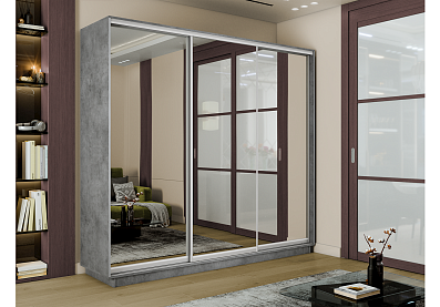 Шкаф-купе Lux с зеркальными дверцами 180x230 Бетон, С полками