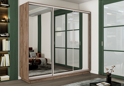 Шкаф-купе Премиум 3х дверный 2100х2400х600 Крафт табачный 210x240 Дуб табачный, С полками