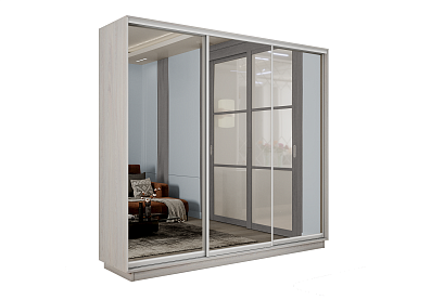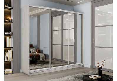 Шкаф-купе Премиум 3х дв 180х240х60 Ясень Анкор светлый Зеркало/Зеркало/Зеркало 180x240 Ясень анкор светлый, С полками