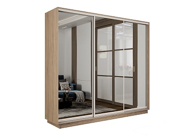 Шкаф-купе Премиум 3х дв 210х240х60 Сонома Зеркало/Зеркало/Зеркало 210x240 Дуб Сонома, С полками