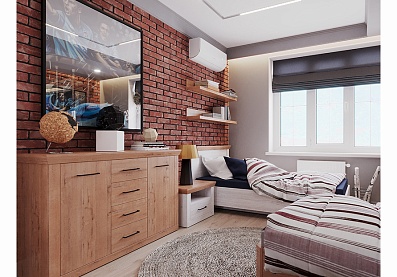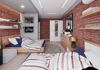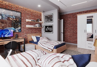 - Мебель выполнена в цвете «дуб бунратти», задняя стенка и донья ящиков — в цвете «черный графит»;