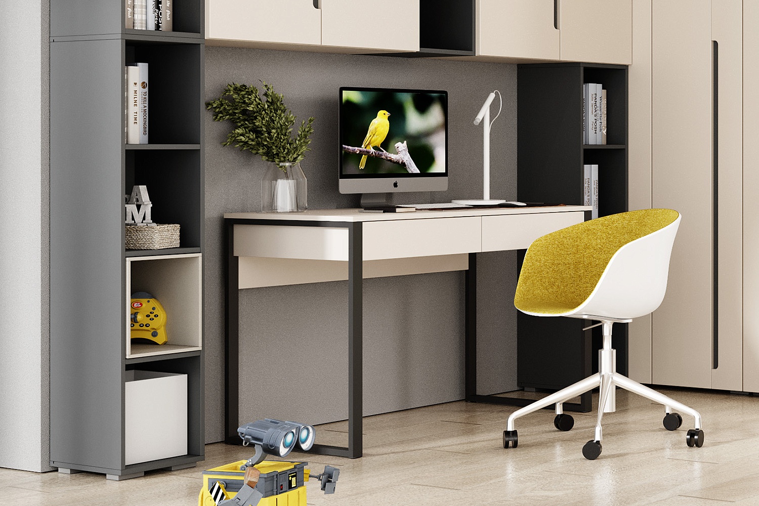 - Шкафы, стеллажи и открытые полки сочетаются друг с другом в различных комбинациях;