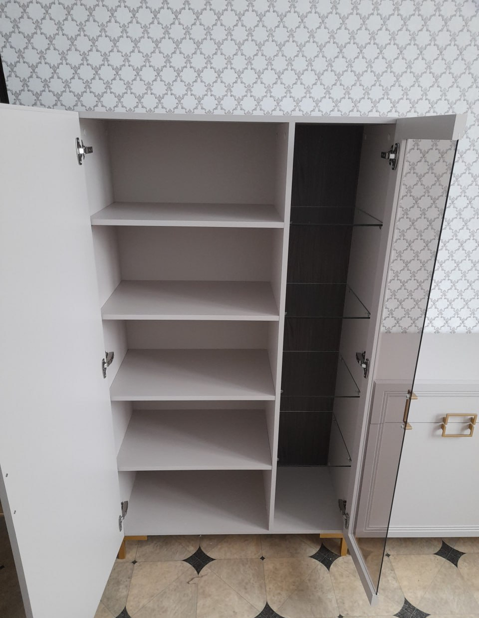 Купить Шкаф Дольче со стеклянными полками (4 шт.) и полкой ЛДСП в интернет-магазине мебели «Ангстрем»