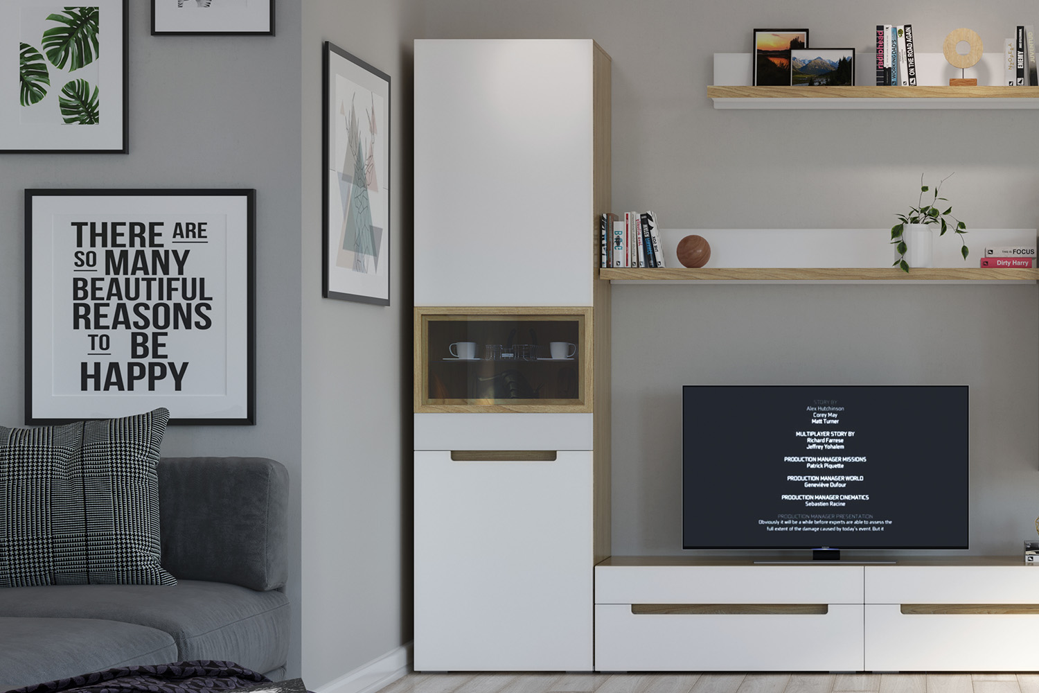 – описание: размер 213.2x60.1x41.6 см, цвет швейцарский вяз, белый, стиль современный, минимализм, назначение для гостиной.