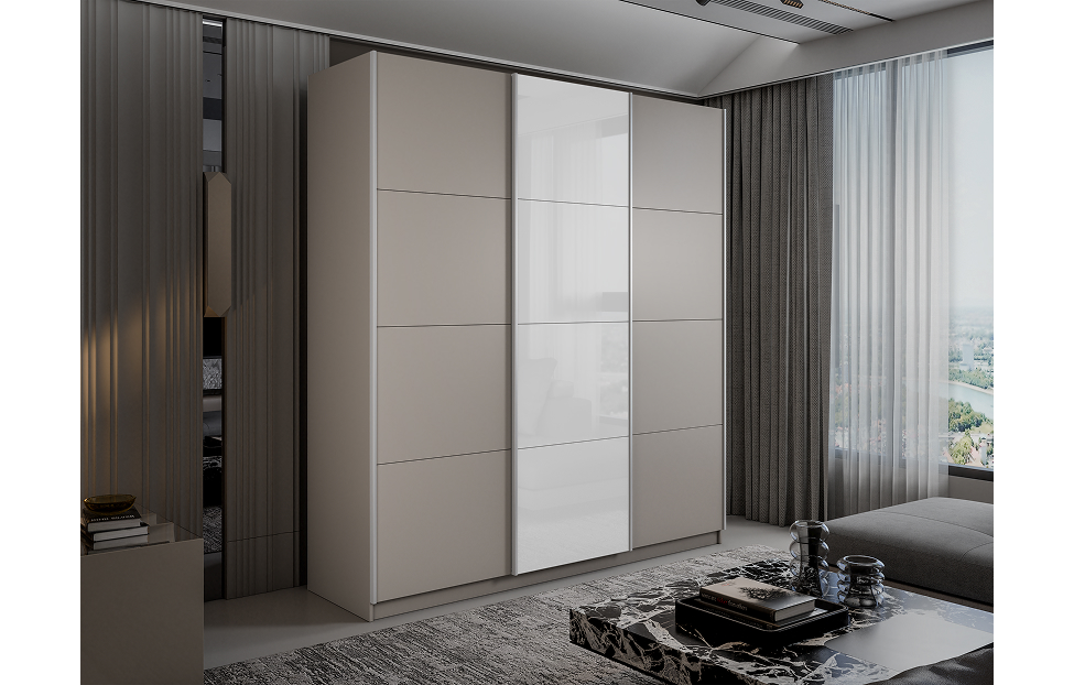 Купить Шкаф-купе Lux 210х230х57 белый глянец/кашемир в интернет-магазине мебели «Ангстрем»