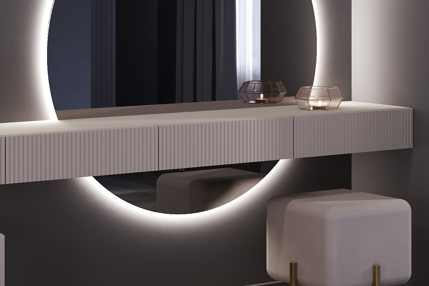 - Внимание! Открывание ящиков происходит путем захвата фасада снизу, поэтому нельзя навешивать вплотную снизу другие модули коллекции Дольче (открывание фасадов будет затруднительным);