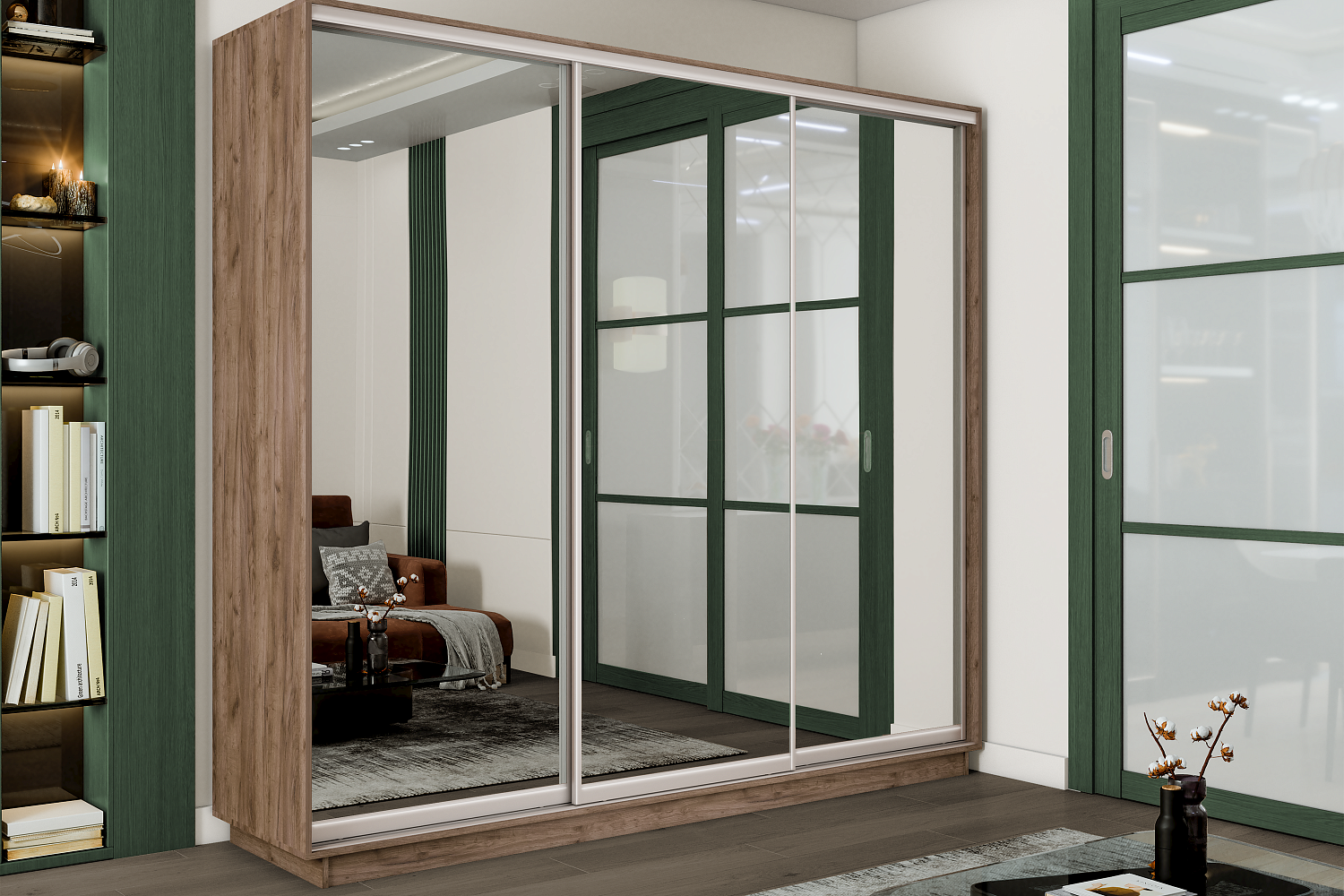 Шкаф-купе Премиум 3х дверный 2100х2400х600 Крафт табачный
